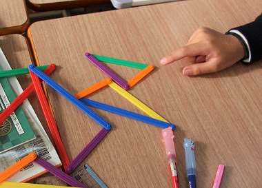 1年生は国語 復習をしています。個別指導で「お」と「を」の違いを